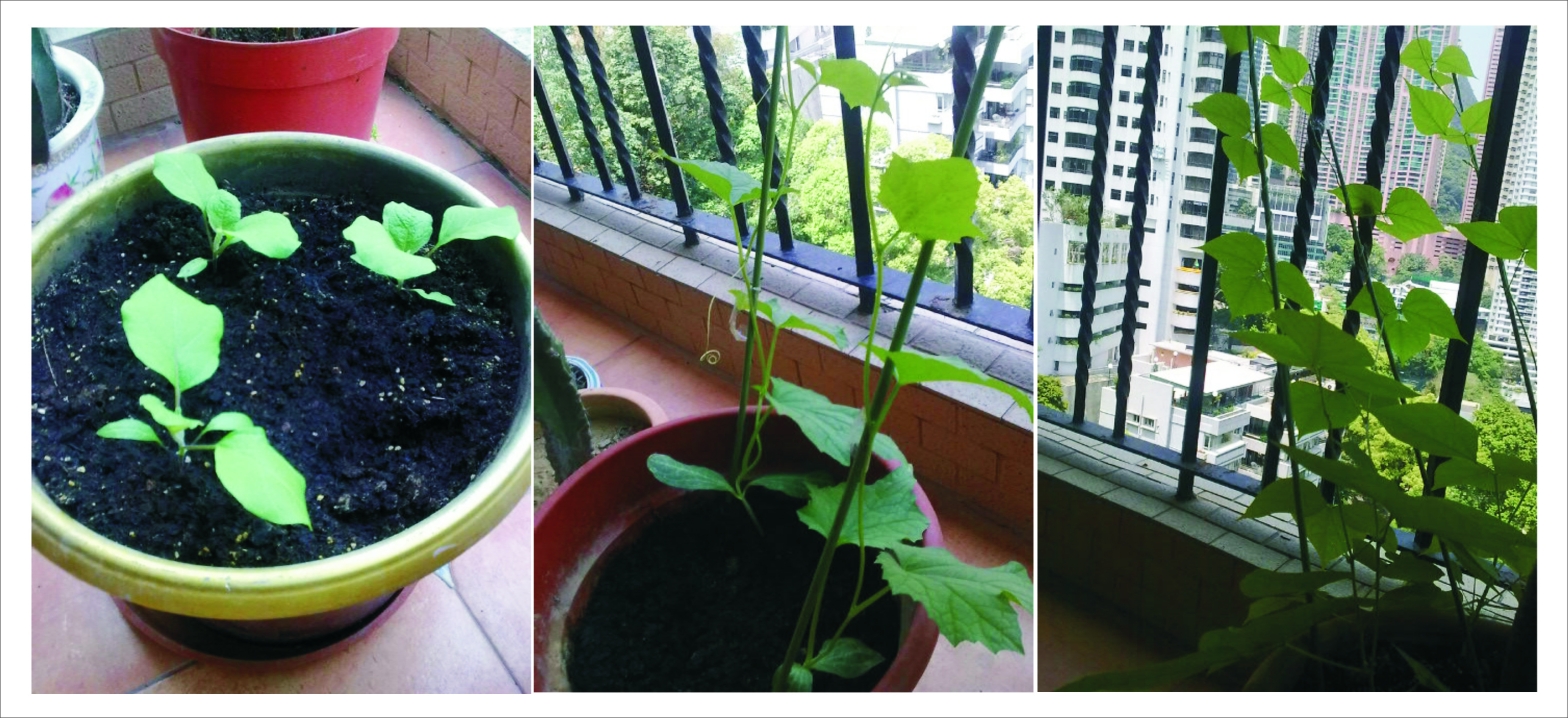在同樣位置貼上今年種的茄子,絲瓜及扁豆 (豆莢)。