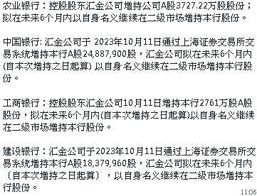1. 历史上,汇金公司曾多次通过增持四大行股份的方式稳定市场情绪,在发布增持公告后,市场一般都会在短期出现企稳或反弹。分别看每次的情况:1)2008年9月18日汇金宣布增持国有银行股份,至9月25日上证指数上涨19%,期间涨幅最高的行业依次是煤炭、非银金融和银行;2)2009年10月9日汇金宣布增持,至11月23日上证指数上涨20%,期间涨幅最高的行业为汽车、家电和电子;3)2011年10月10日汇金宣布增持,至11月15日上证指数上涨7%,期间涨幅最高的行业为传媒、环保和计算机;4)2012年10月10日汇金宣布增持,至2013年2月7日,上证指数上涨14%,期间涨幅最高的行业为银行、汽车和房地产;5)2013年6月13日汇金宣布增持,当时市场处在快速调整过程中,6月25日市场企稳,至9月12日上证指数上涨15%,期间涨幅最高的行业为传媒、交通运输和商贸零售;6)2015年8月19日汇金宣布增持,当时市场同样处于快速调整过程中,8月26日市场企稳,至11月11日上证指数上涨23%,期间涨幅最高的行业为非银金融、计算机和环保。
